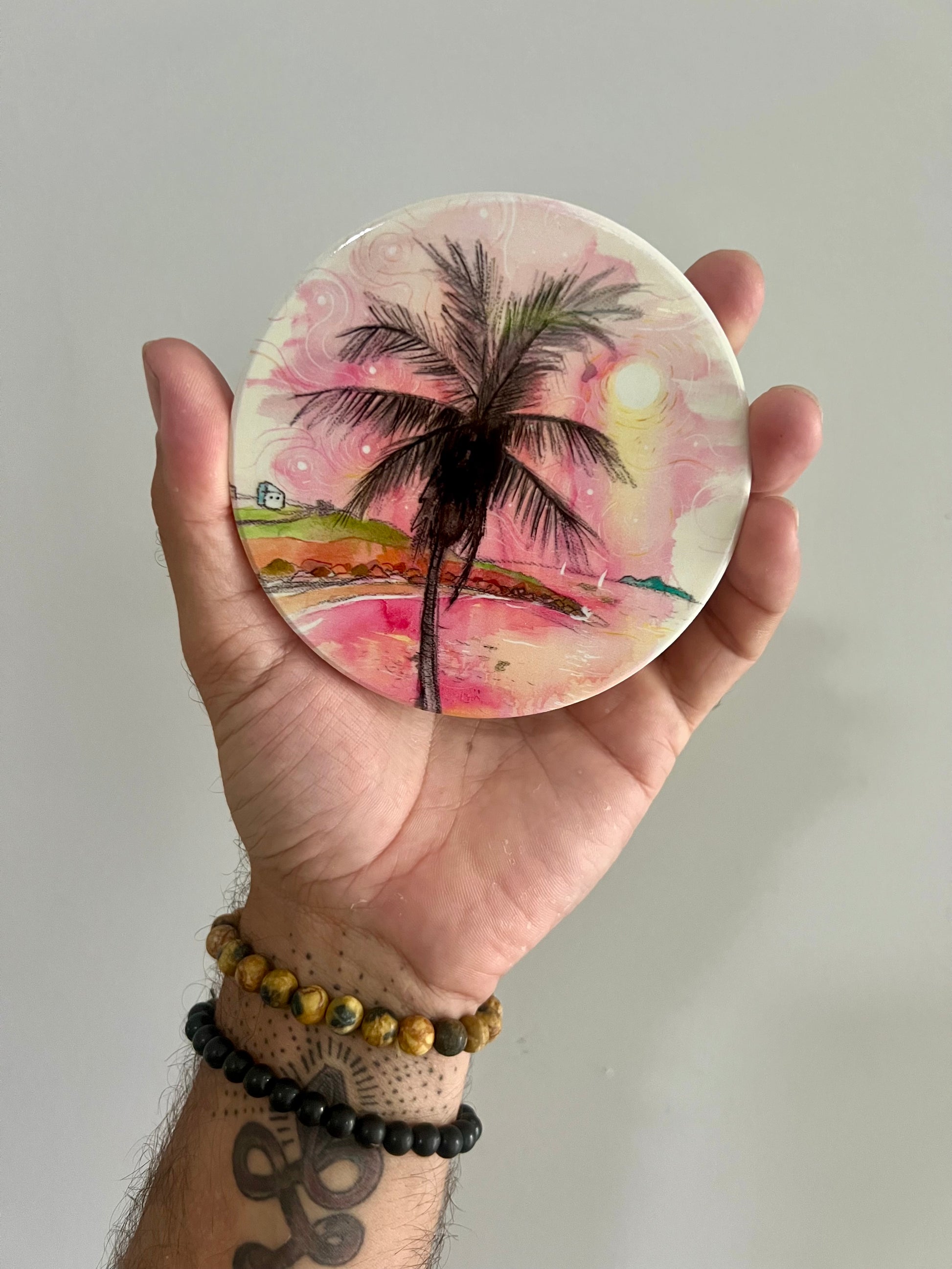 Pink Palm Ceramic Coaster